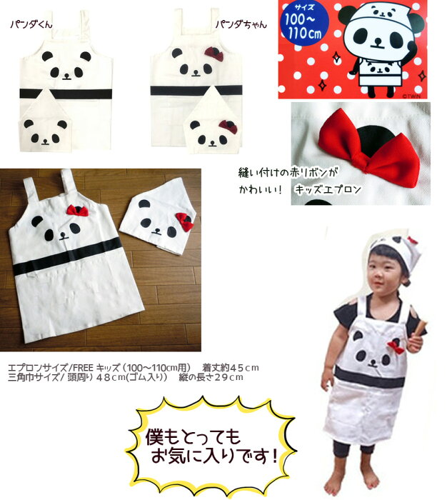 送料無料 エプロン こども用 幼児 パンダ 三角巾つき キッズ用 キッズサイズ 親子お揃い ペア 一人で着られる 保育園仕様 蝶結び不要 料理教室 クッキング 親子 コスプレ ぱんだ おそろいコーデ エプロン 配達日時指定不可