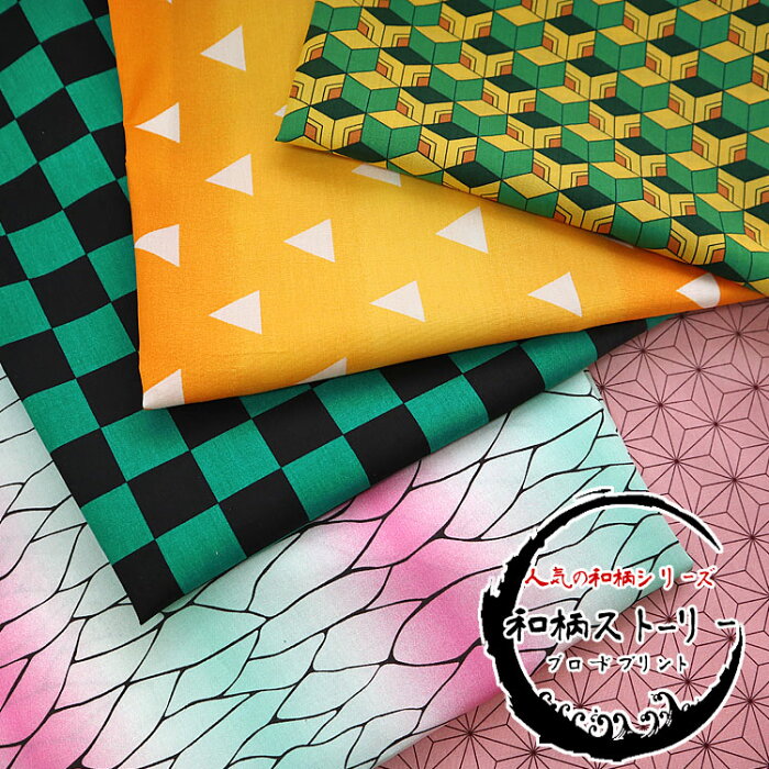 人気の和柄シリーズ!!『和柄◇ストーリー』≪ブロードプリント≫※108cm幅 コットン100%|市松模様 緑 黒 生地 コスプレ衣装 和柄 羽織 チェック柄 格子柄 麻の葉 ピンク 毘沙門亀甲 鱗文様 うろこ 三角 蝶 チョウ 羽根|