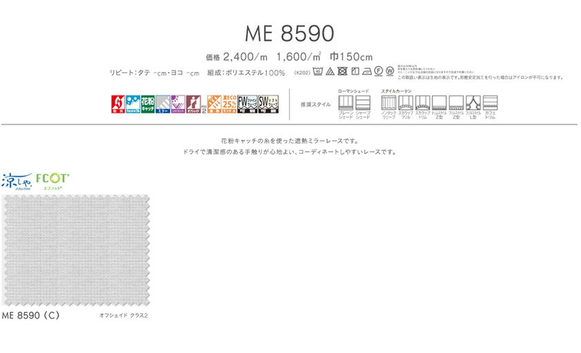 ME8590 ME2550 防炎 ウォッシャブル 花粉キャッチ ミラーレース NIFUVカット オフシェイドクラス2 NIF遮熱 夏エコA FW可能 SW可能 プレーンシェード シャープシェード ノンタックウェーブ スカラップフリル スカラップトリム ハイギャザートリム ハイギャザーフリル センタークロスフリル カフェトリム K202一覧はここをクリック↓