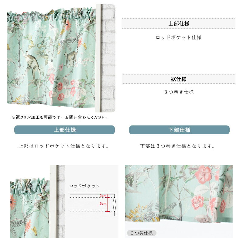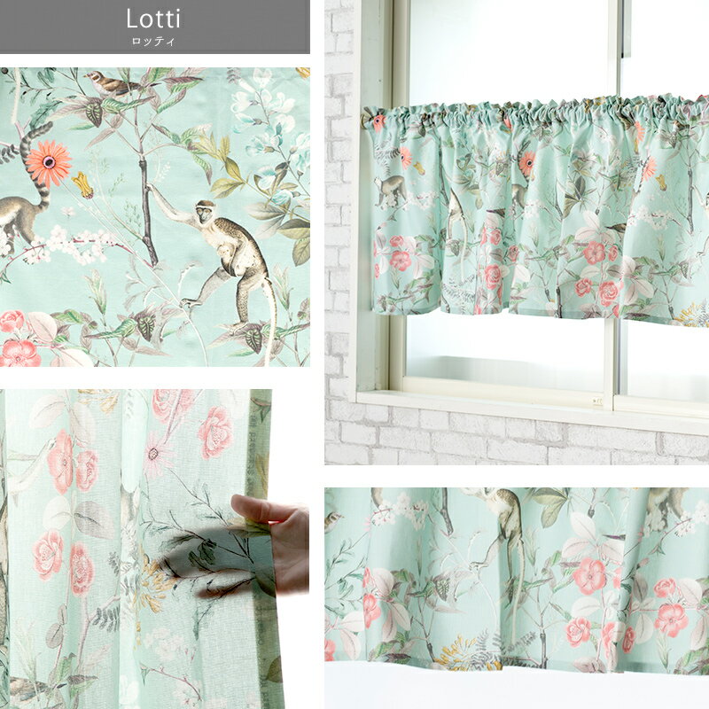[1000円オフクーポンあり]カフェカーテン サイズオーダー 幅35〜100cm 丈35〜50cm【YH802】ロッティ [1枚] 猿 花 鳥 アニマル OKC5